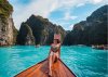Longtail Boat Tour Scenic ride for photo among limestone cliff and emerald waters.