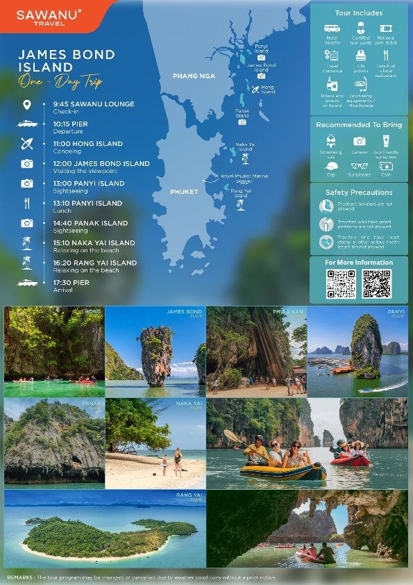Visit James Bond Island (Koh Tapu) in Phang Nga Bay. Enjoy canoeing, limestone cliffs, and scenic views with a one day trip from Phuket. Suitable for all ages.